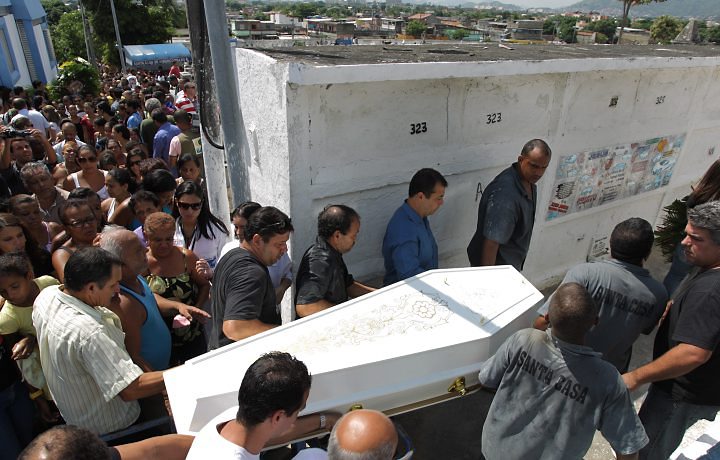 Το κλειστό κύκλωμα παρακολούθησης στο εσωτερικό του σχολείου Tasso da Silveira, στο Ρίο ντε Τζανέιρο της Βραζιλίας, που δόθηκε σήμερα στη δημοσιότητα δείχνει τη στιγμή που ο δράστης εισβάλλει οπλισμένος.